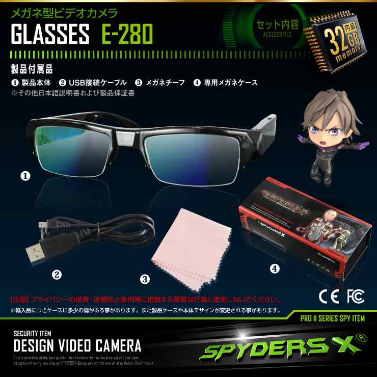 メガネ型 小型カメラ (E-280) ミラーコートレンズ